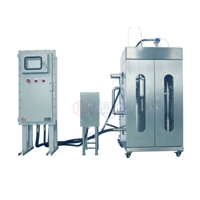 包含:配料罐、溶劑罐、輸料蠕動泵、輸料管路、霧化器,**將配置好的漿料投入配料罐,攪拌均勻后在蠕動泵的驅動下,漿料通過管路閥門到達霧化器,霧化器需要配備上海喬楓特制的防爆霧化器噴頭,噴頭壽命保修使用一年。