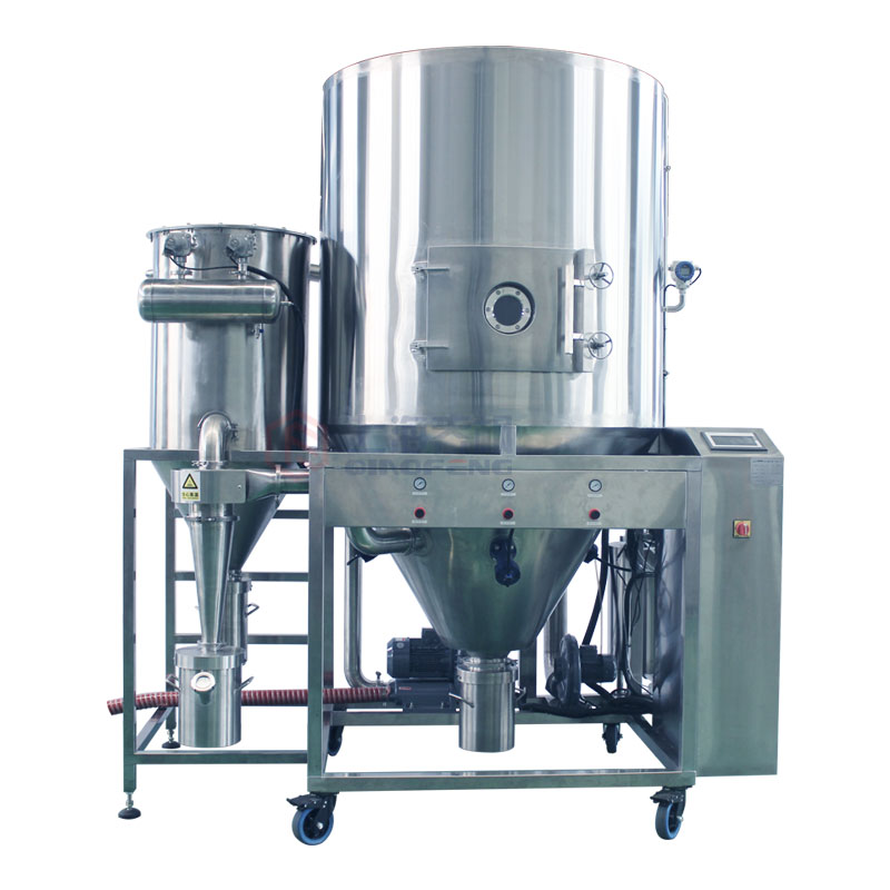 噴霧造粒干燥機是上海喬楓自主研發的一套造粒噴霧干燥機的。QFN-ZL系列造粒噴霧干燥機(喬楓**)專門的雙氣送液造粒噴頭,國內一大創新,直接將均勻的球形霧滴通過均勻的熱量變成顆粒。